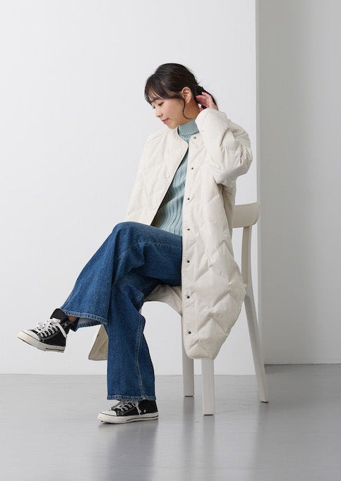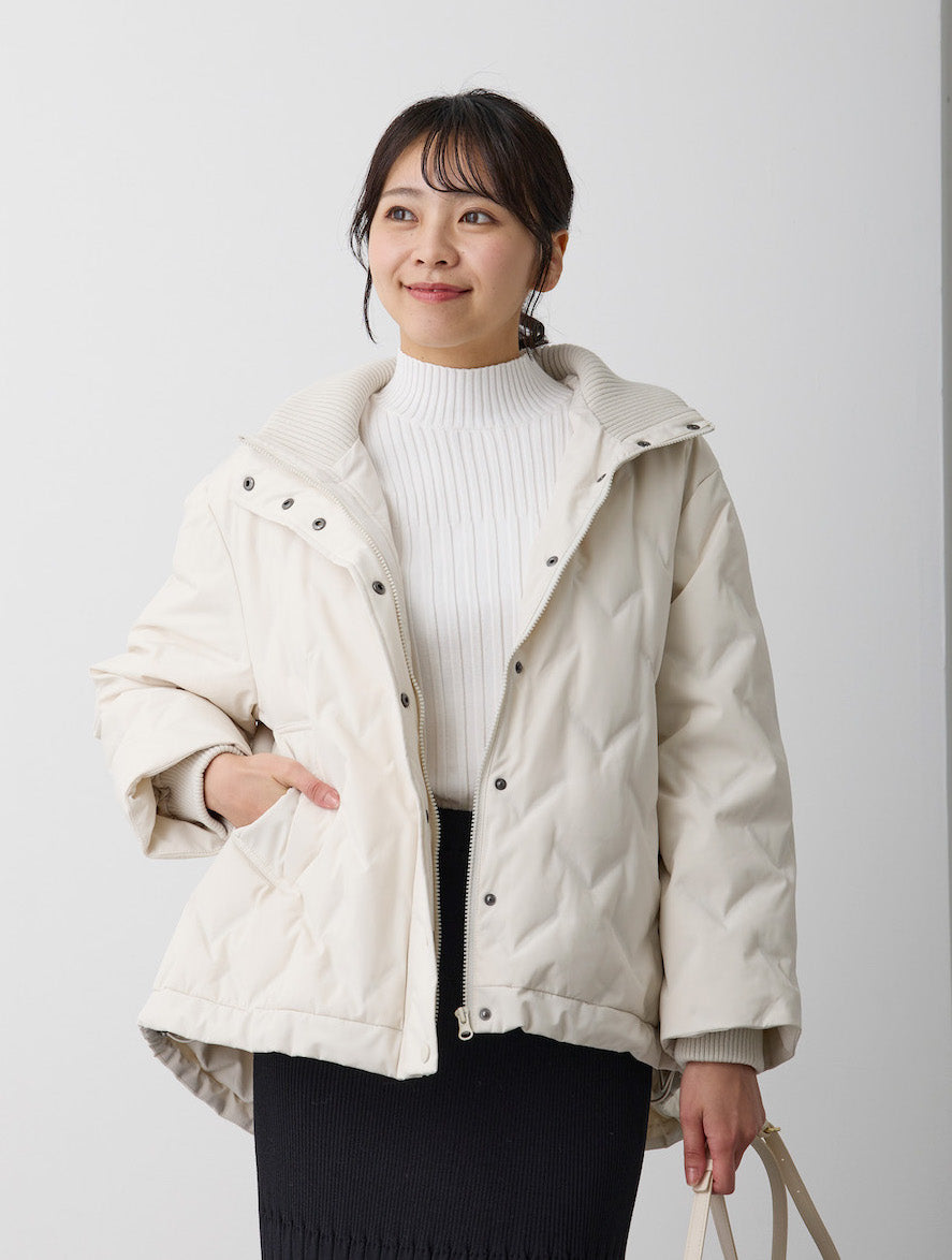ファー衿ボリューム袖ダウンジャケット アイボリー